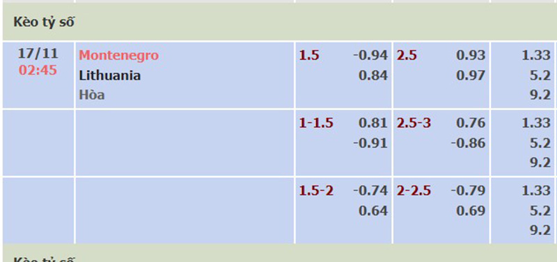 Soi kèo trận đấu giữa đội tuyển Montenegro vs Lithuania