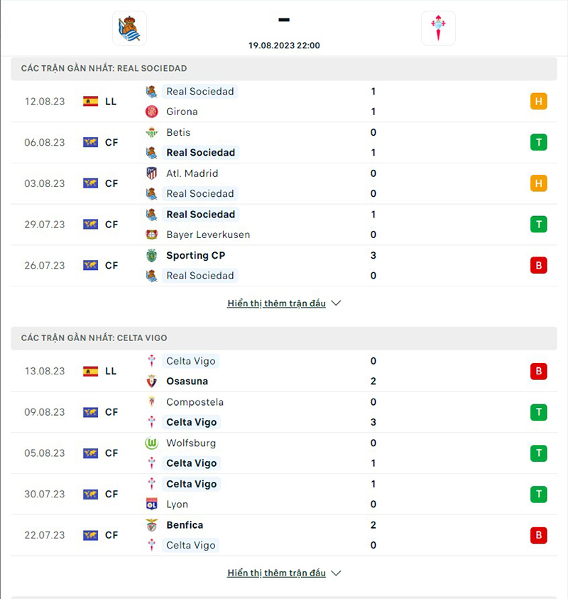 Phong độ thi đấu của đội tuyển Real Sociedad vs Celta Vigo