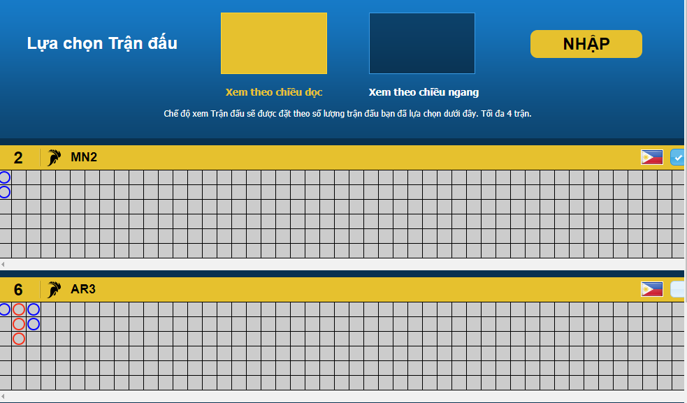 Bước 1: Chọn giải đấu và nhấn NHẬP