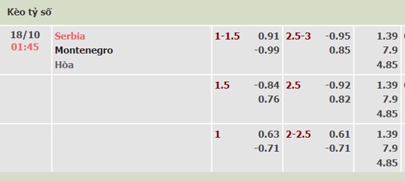 Tuy điểm số và vị trí không có sự chênh lệ lớn, trên thị trường cá cược châu Á, Serbia đang chấp tới 1 1/4 trận trong trận đấu này. Tỷ lệ này là khá lạc quan đối với đội chủ nhà, đặc biệt khi họ đang trải qua một giai đoạn thi đấu không ổn định.