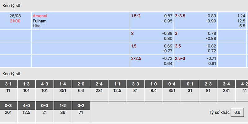 Soi kèo trận đấu giữa đội tuyển Arsenal vs Fulham