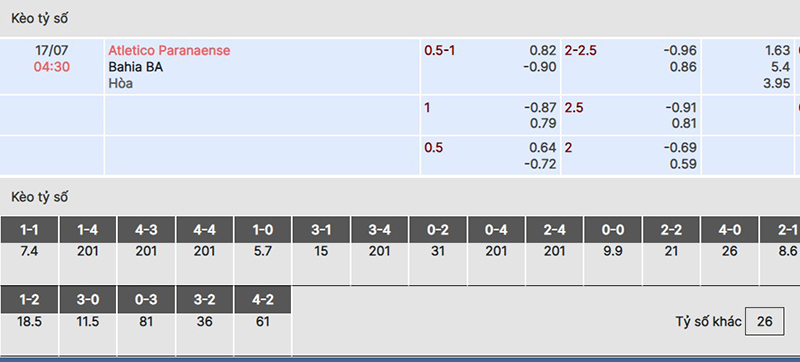 Soi kèo trận đấu giữa đội tuyển Atletico Paranaense vs Bahia