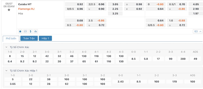 Bảng tỷ lệ kèo trận đấu giữa đội tuyển Cuiaba vs Flamengo