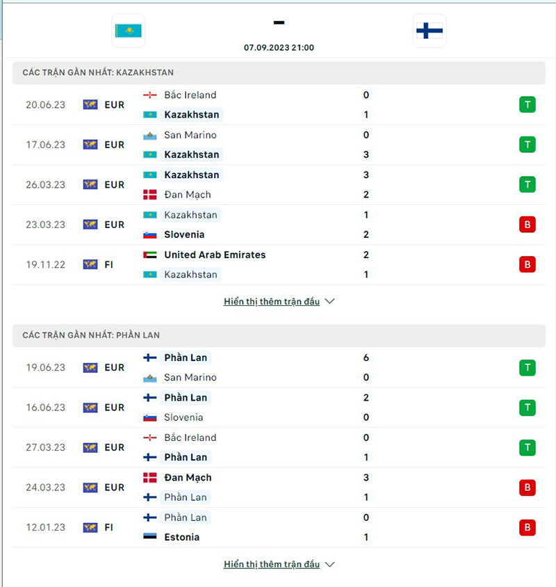 Phong độ thi đấu của đội tuyển Kazakhstan vs Phần Lan
