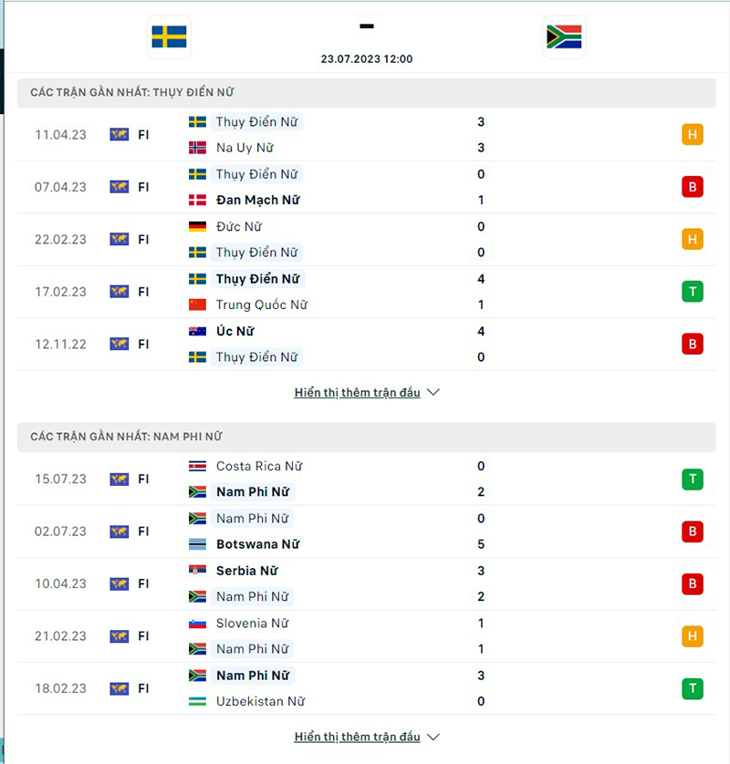 Phong độ thi đấu của đội tuyển nữ Thụy Điển vs nữ Nam Phi