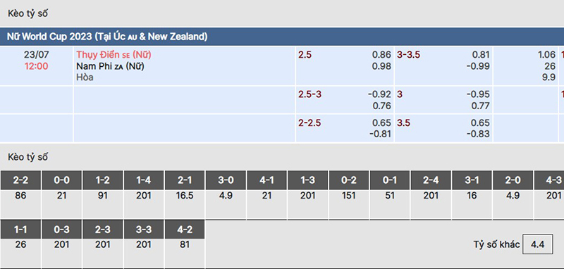 - Kèo châu Á đội tuyển nữ Thụy Điển chấp 2.5 trái fulltime => Chọn nữ Nam Phi.