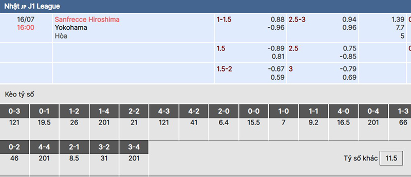 Soi kèo trận đấu giữa đội tuyển Sanfrecce Hiroshima vs Yokohama