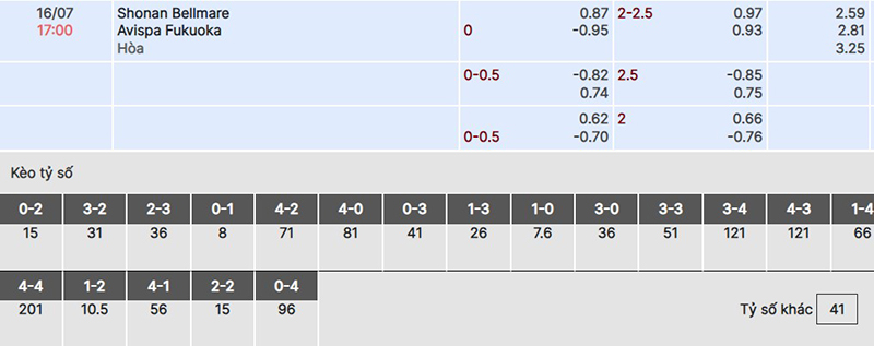 Soi kèo trận đấu giữa Shonan Bellmare vs Avispa Fukuoka