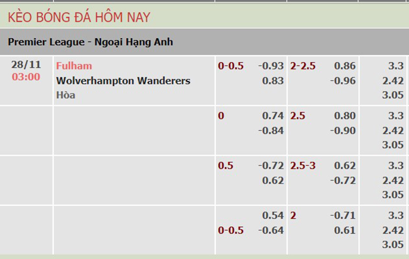 - Kèo châu Á Fulham chấp 0-0.5 trái fulltime => Chọn Wolves.