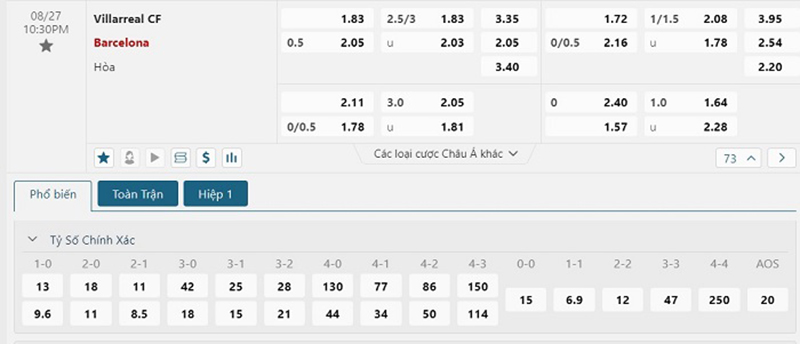 Soi kèo trận đấu giữa đội tuyển Villarreal vs Barcelona