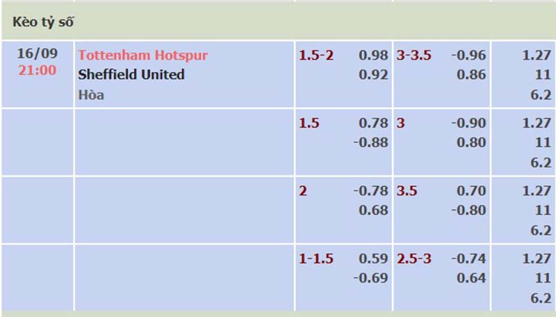 Soi kèo trận đấu giữa đội tuyển Tottenham vs Sheff Utd