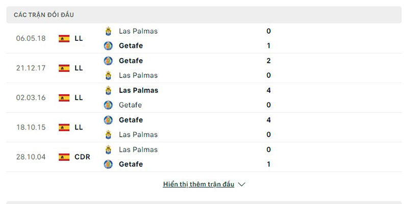 Kết quả đối đầu giữa Las Palmas vs Getafe