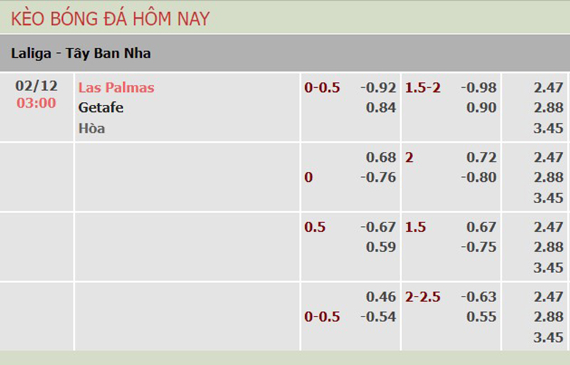 Soi kèo trận đấu giữa đội tuyển Las Palmas vs Getafe