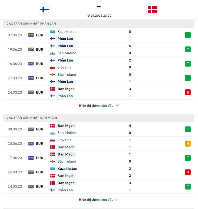 Phong độ thi đấu của đội tuyển Phần Lan vs Đan Mạch