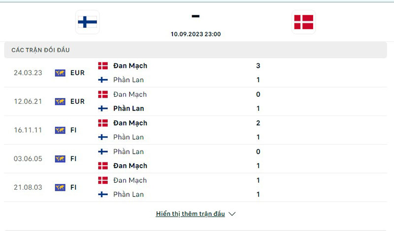 Lịch sử đối đầu giữa đội tuyển Phần Lan vs Đan Mạch
